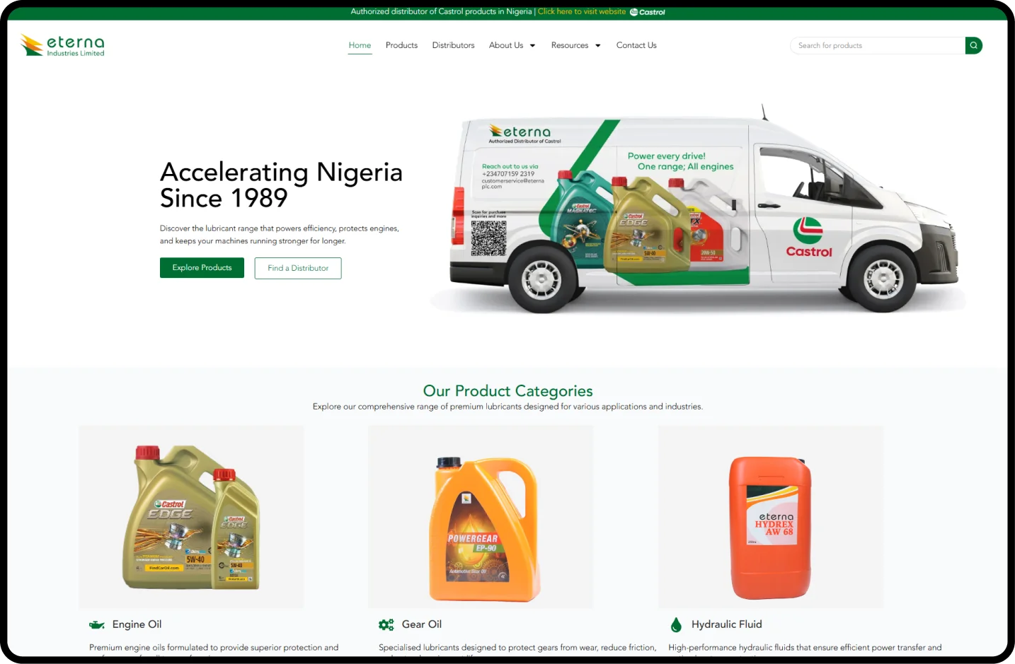 A corporate site redesigned to highlight industrial lubricants and strengthen brand credibility.