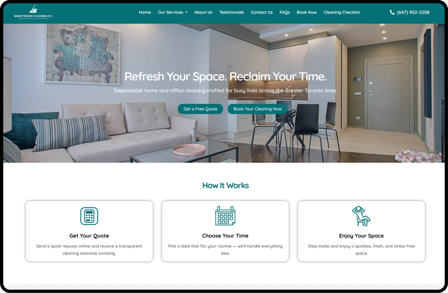 A service website optimized to showcase cleaning packages and improve booking conversions.