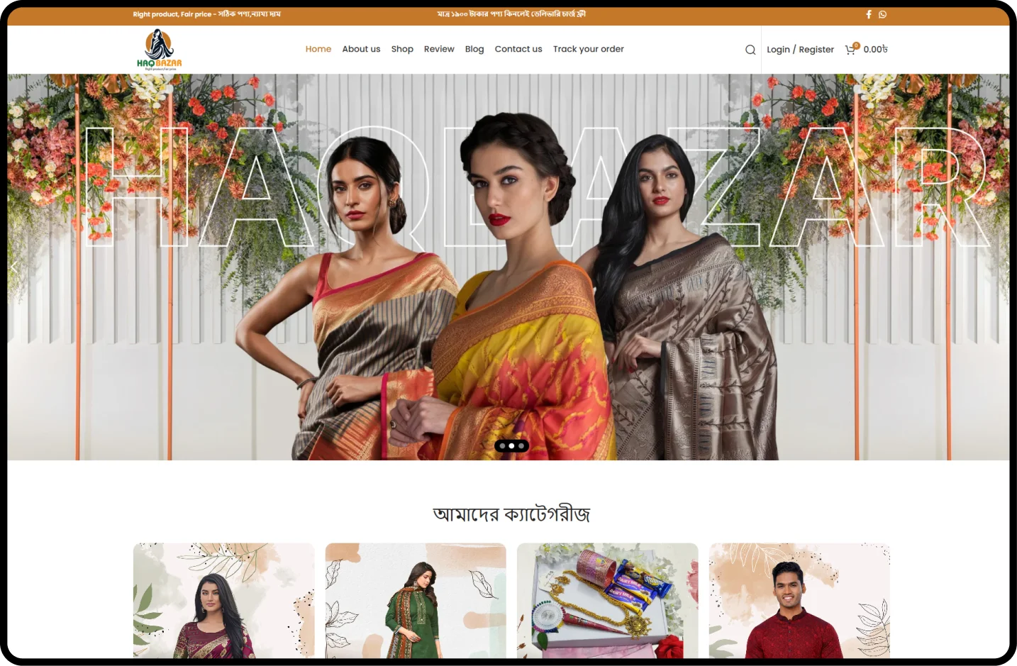 An eCommerce platform crafted to sell authentic Tangail sarees directly from the factory.