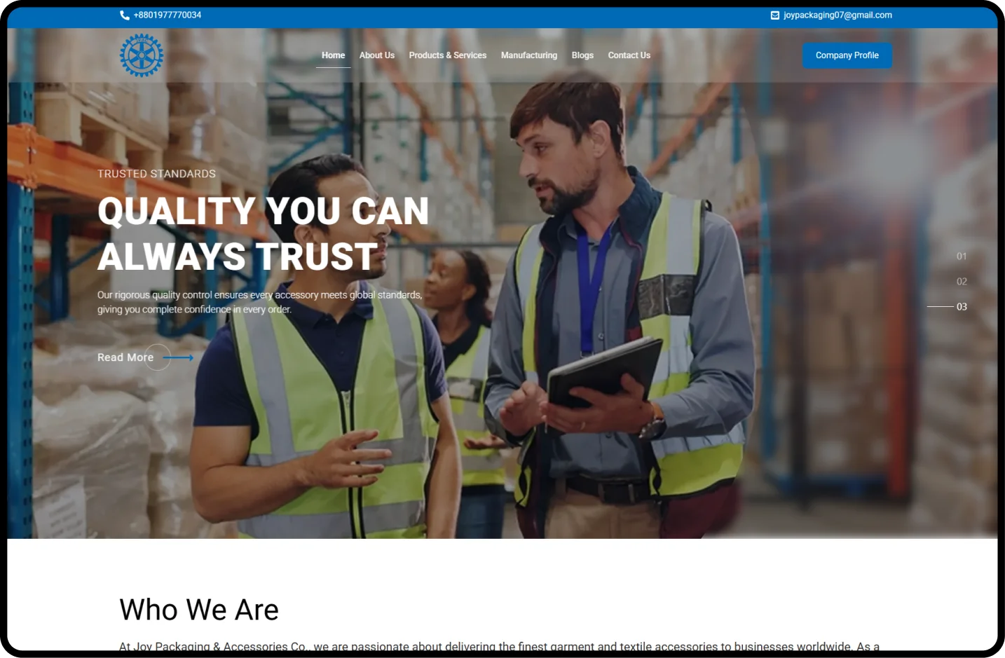 A manufacturing site structured to present product categories and support B2B lead generation.