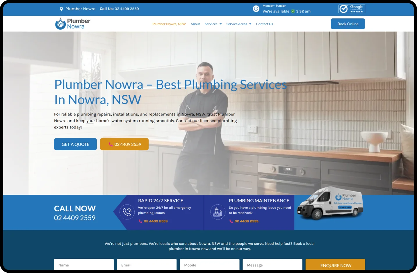 A local service website redesigned to highlight plumbing solutions and increase service inquiries.