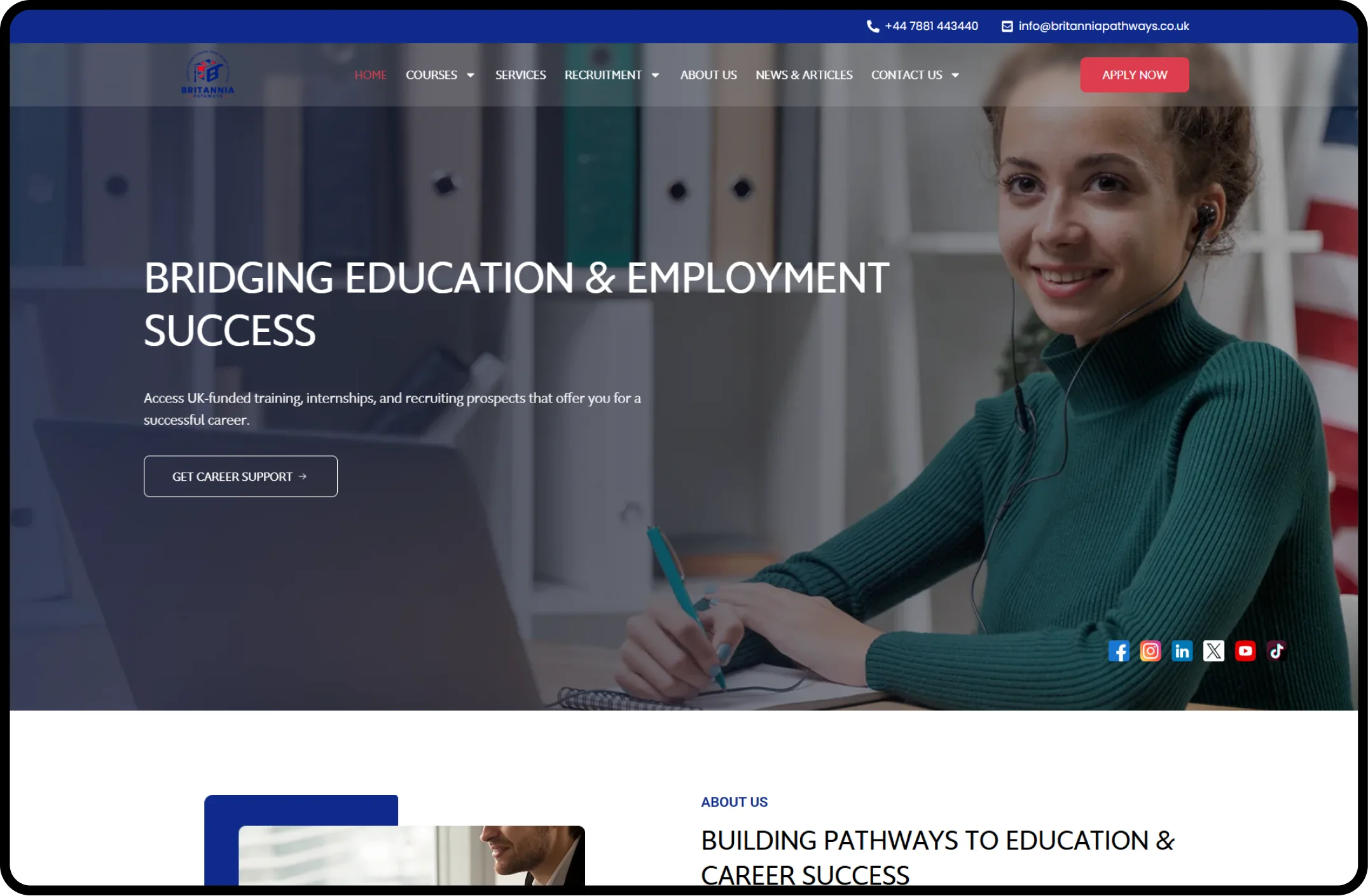 An education consultancy website built to streamline student guidance and improve UK admission support.